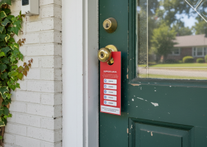 Door-hanger discounts and QR door actions increase immediate response and trackability.