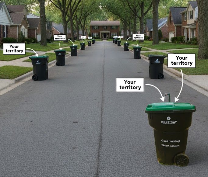 Reach homes with repeat, physical impressions. TrashAds maps carts to households, targets neighborhoods, and delivers qualified impressions at a fraction of other media costs.